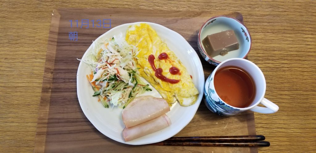 朝食、野菜を取るようしました。