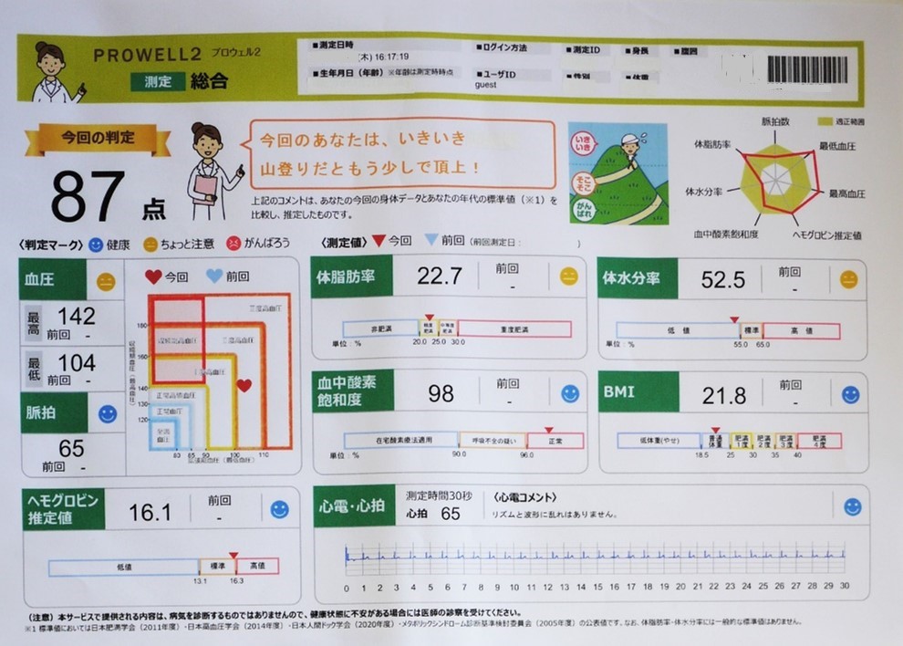 左の数値は、調剤薬局で測定したチャレンジ前の得点。